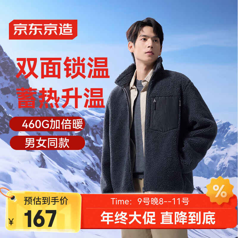 包邮 京东京造外套男羊羔毛秋冬季夹克情侣宽松加厚服装衣服 深灰色 L